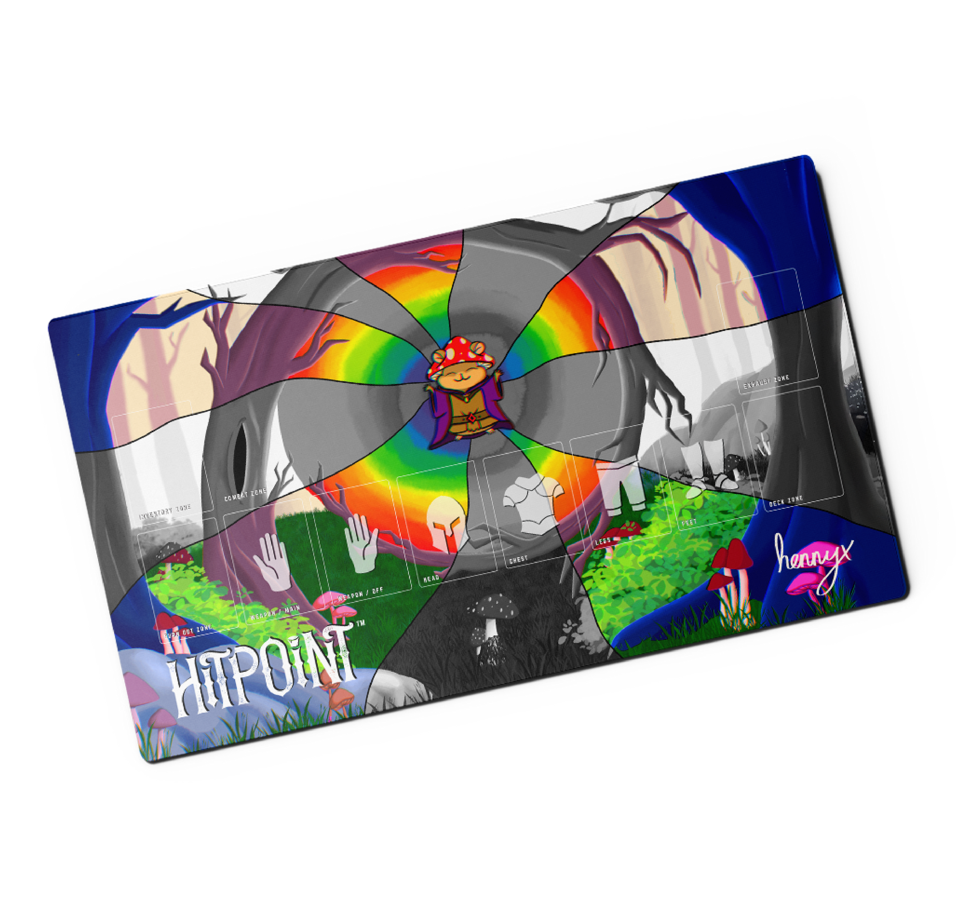 HitPoint itself has also been a huge inspiration. Besides the fact that Maple is my favorite in the game, HitPoint was the first TCG I ever played, and it’s still my favorite one. As someone who was never interested and even hesitant to play any TCGs, it’s so simple to learn but so exciting to play that it’s been hard NOT to be hooked! I feel incredibly honored and grateful to have gone from a passionate player to an ambassador for the game, to now a playmat designer! I’m excited to share my design and I hope everyone has as much fun with my design as I did making it!"